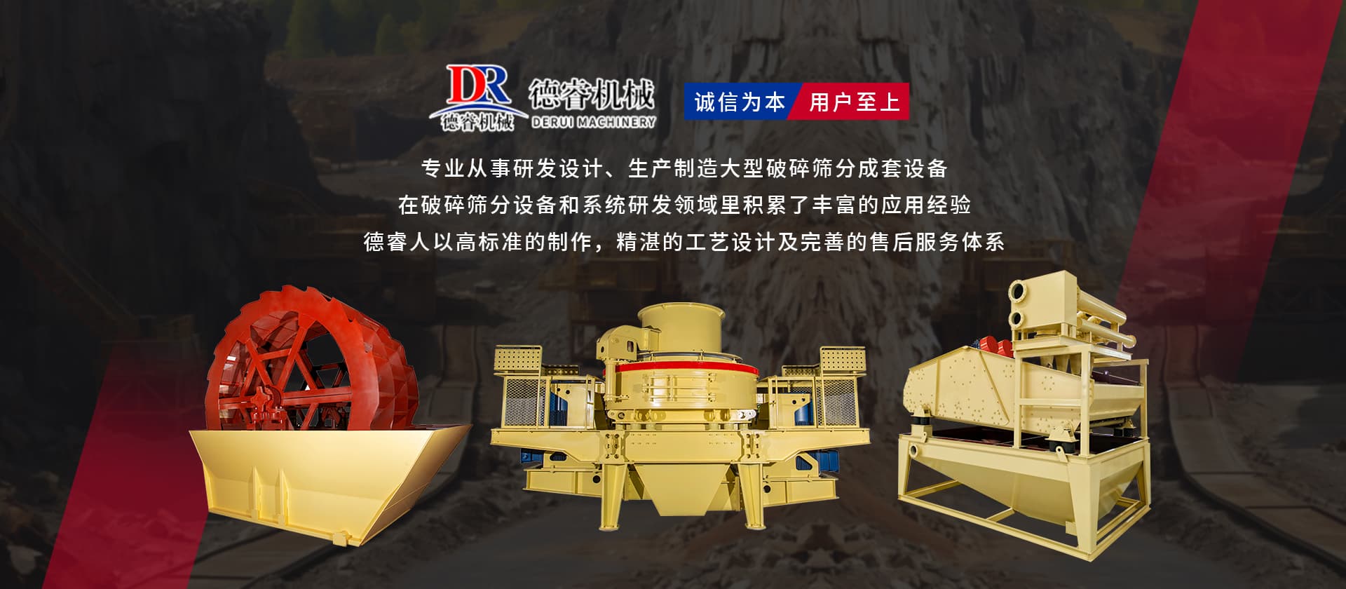 “誠信為本,用戶至上”德睿人以高標(biāo)準(zhǔn)的制作,精湛的工藝設(shè)計(jì)及完善的售后服務(wù)體系在破碎篩分設(shè)備和系統(tǒng)研發(fā)領(lǐng)域里積累了豐富的應(yīng)用經(jīng)驗(yàn)。借助在破碎行業(yè)的豐富經(jīng)驗(yàn),公司可向客戶提供碎石制砂生產(chǎn)線設(shè)計(jì)、安裝、調(diào)試等交鑰匙工程,同時(shí)承接破碎系統(tǒng)的爆破、裝運(yùn)、破碎等生產(chǎn)運(yùn)行總承包。